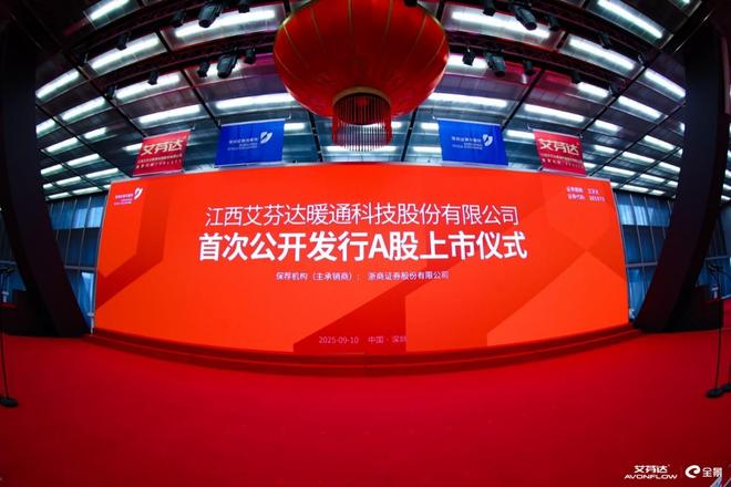 “ 9月10日,艾芬达暖通科技股份有限公司(下称“艾芬达”)正式发行上市。这家从江西走出来的“单项冠军”,在企业的20周年之际,正式登陆中国资本市场。 ...